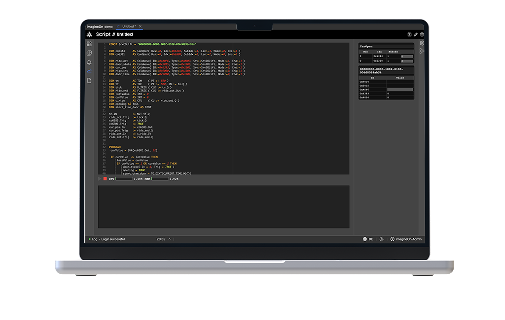 - Integrierter Script-Editor für Entwicklung und Pflege der Geräte-Logik